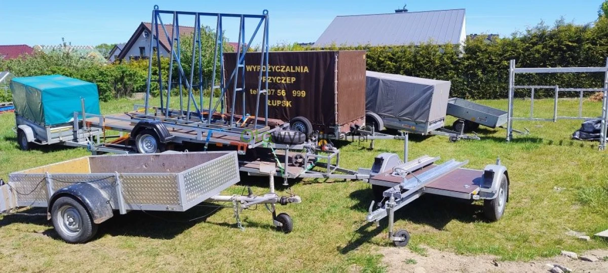 2. Przyczepka lekka DMC 750 kg plandeka 2,6m dł. x 1,25m szer. x 1,10m wys. 50 zł doba tydzień 300 zł